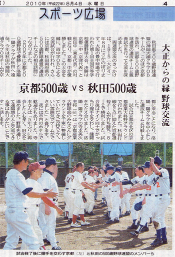 先日、仕事が終わって自宅でビール片手にプロ野球中継を観ながら、京都新聞の夕刊に母校の記事が載っていました。 優勝目指して頑張ってほしいです。